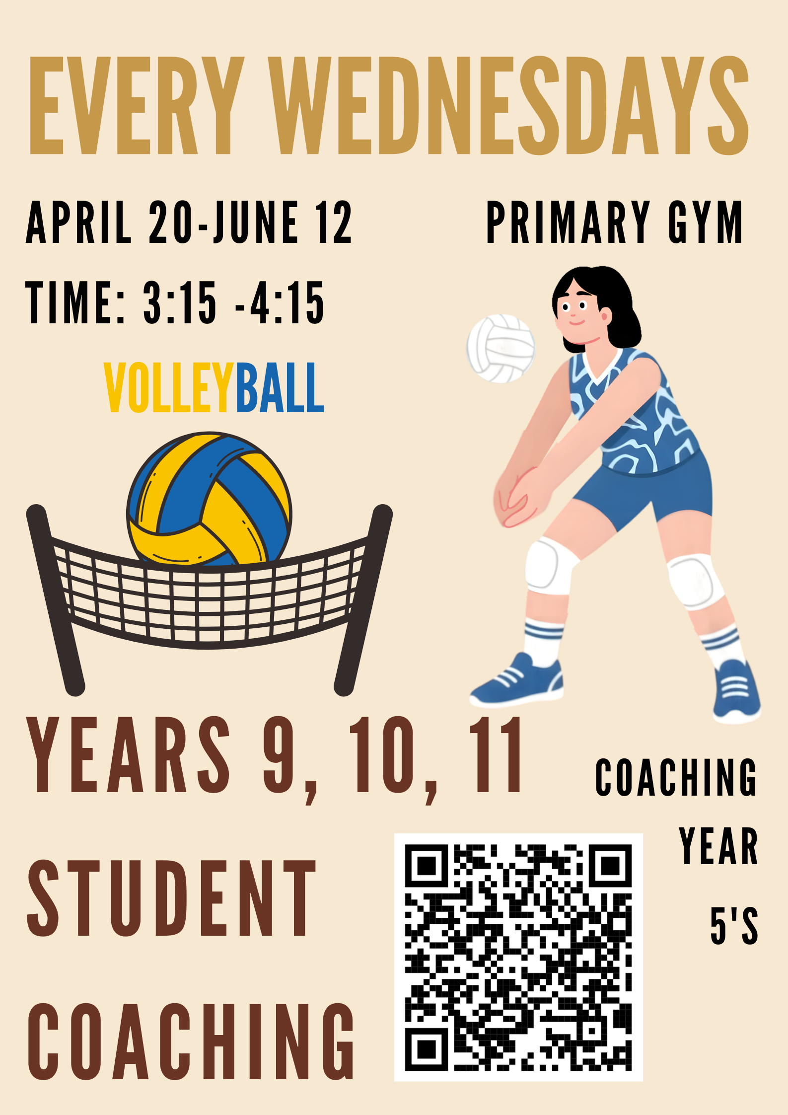 We are recruiting committed student coaches from Year 9-11. During sessions, student coaches have the responsibility to teach younger students basic volleyball skills such as serving, passing and setting.